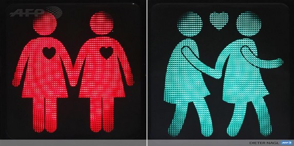 A l’occasion de l’Eurovision qui aura lieu samedi prochain à Vienne, la ville s’est dotée de feux piétons en faveur de la tolérence envers les couples homosexuels. L’Autriche avait remporté l’année dernière le concours grâce à l’envoûtant/e Conchita Wurst