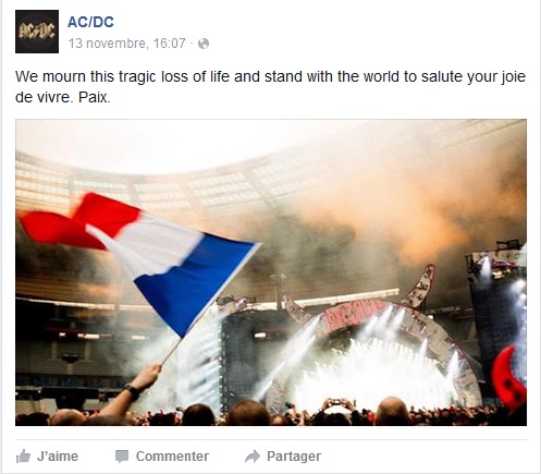 Niveau solidarité, beaucoup de groupes ont publié des messages sur leur réseaux sociaux, j’avais parlé de Saxon (ICI) mais il y a également Aerosmith qui a modifié sa photo de profil, ou encore AC/DC :