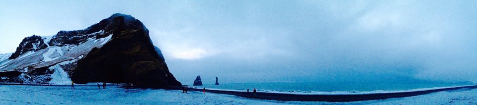 La plage est faite de sable fin noir, typiquement volcanique. Au loin, on distingue des falaises, plus ou moins creusées à la Etretat. Une d’entres elles est visitable de l’intérieur car elle forme une caverne. Sa structure géologique n’est qu’un orgue basaltique, incroyable dans sa régularité. La mer est agitée, la neige commence à tomber, recouvrant le sable noir. Une fois encore, le temps semble être à l’arrêt.