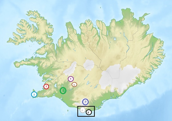 Je vous laisse ci-dessous la carte de l’Islande, afin de visualiser les sites que j’ai pu faire :