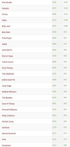 Liste des concerts