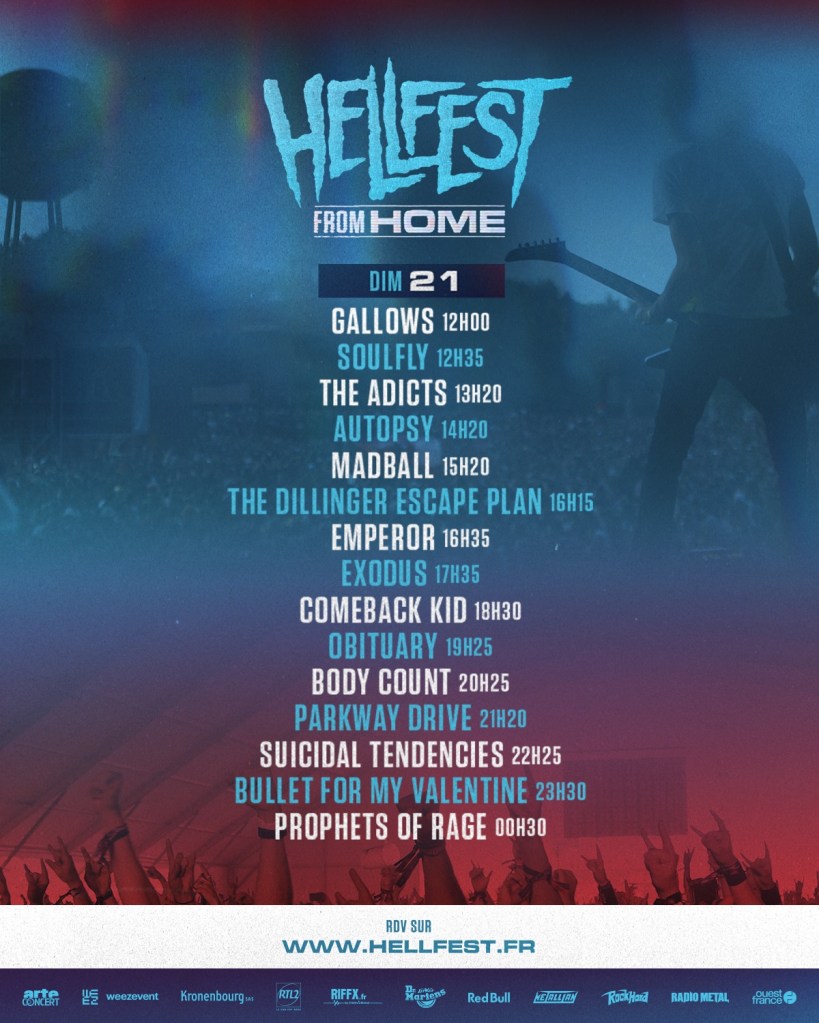 Depuis jeudi soir 20h, les hostilités ont débuté sur Arte Concert et Hellfest.fr. Ne loupez pas 15 concerts/jour pour un Hellfest From Home. Le reportage « Hellfest, 15 ans de bruit et de fureur » diffusé jeudi soir en exclue sur Hellfest.fr sera retransmis le 26 juin à 23h55 sur la chaîne Arte. Retrouvez également sur la page Metal d’Arte Concert, tous les concerts de ces 3 jours. Si vous avez une télé récente, je vous conseille d’investir dans une clé usb « fire stick », vous aurez Arte Concert sur votre télé 😉