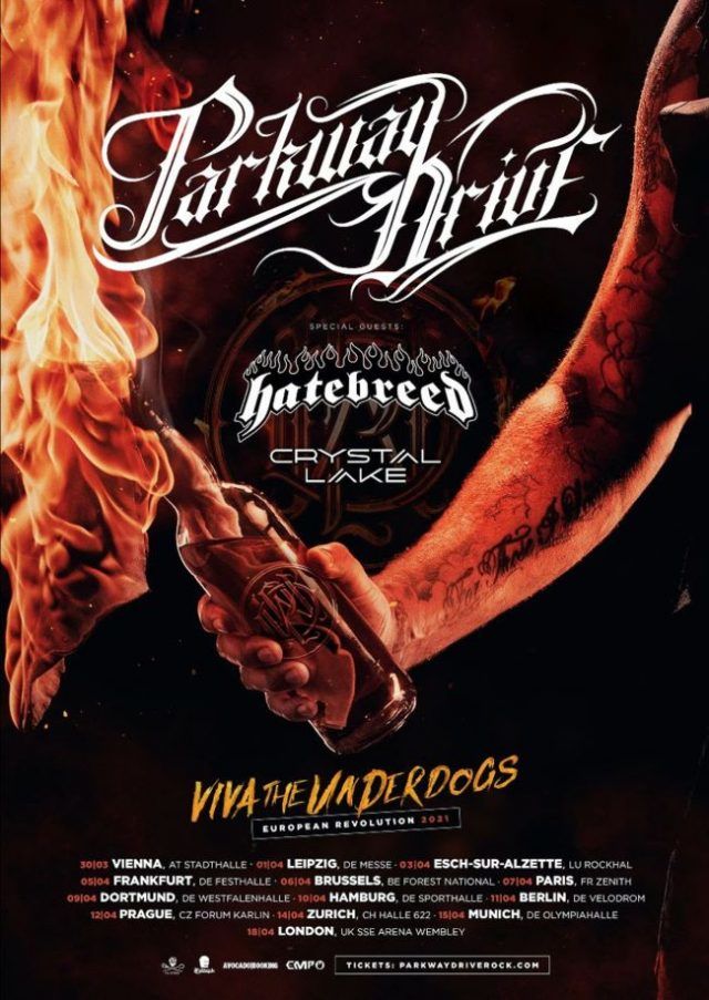 Parkway Drive & Hatebreed ont reprogrammés leur tournée européenne avec la date Parisienne le 7 avril 2021 :