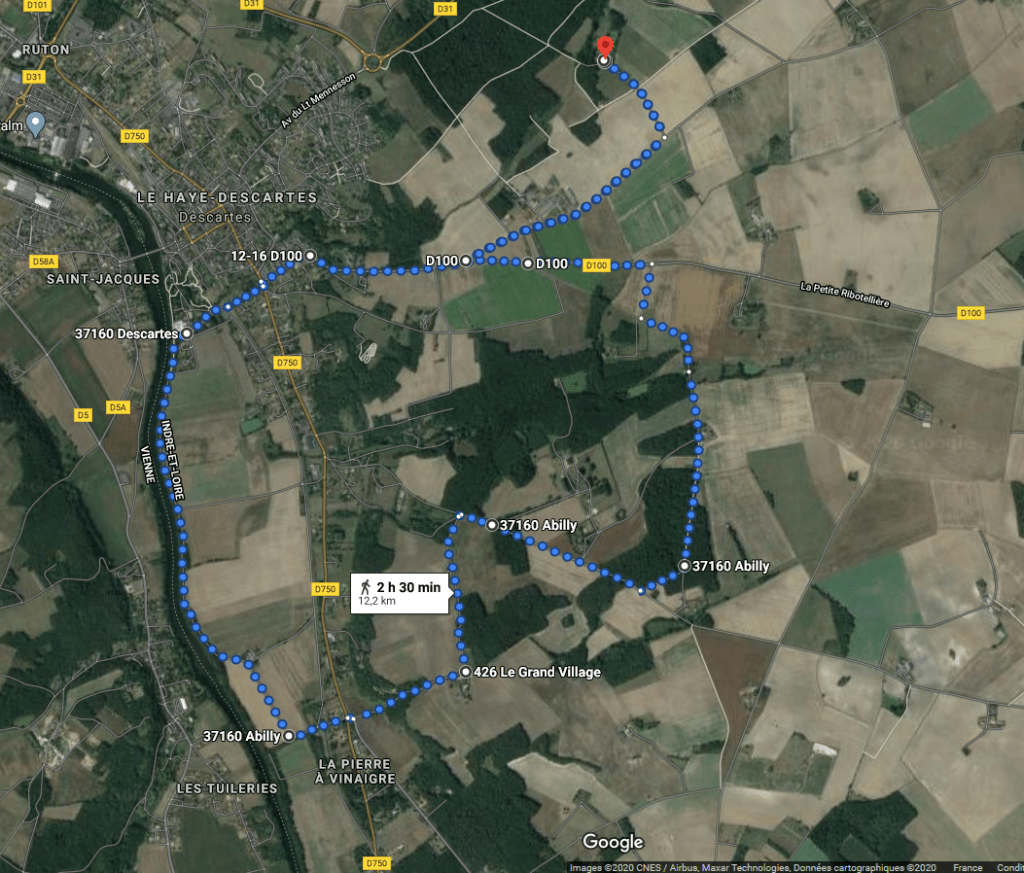 Arrivés vers 15h, nous avons décidé de partir en randonnée (14km) autour de Descartes en se perdant un peu près du château du Bois d’Aix à Abilly et en longeant la Creuse.