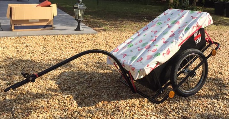 La base, si vous partez en vadrouille, c’est d’avoir des chambres à air (2 par vélo pour notre périple, 0 utilisée), des outils pour démonter les pneus, resserrer les freins, la selle et des tendeurs (je vous assure que ça sert toujours et ne prend pas de place). Concernant l’équipement, ne soyez pas avare sur de bonnes sacoches étanches. Perso, on a fait l’impasse cette année car il faut compter environ 150€ par paire. On a opté pour la petite charrette tractée avec l’attache sous la selle en promo à 70€ en se disant qu’elle nous servirait les we pour prendre notre tente et tout ce qu’il faut (ne pas acheter cette merde !) et une petite sacoche porte clés et portable qui s’attache au niveau du guidon (30€), très pratique pour suivre votre route. Ne pas oublier le baume du tigre (avant/après effort), la Gaulthérie (si tendinite) et une crème anti-frottement pour les cacahuètes de ces messieurs (comptez 30€ pour ces 3 crèmes – huiles essentielles). Pour éviter l’échauffement des cuisses, j’avais un legging de course léger et court que je mettais sous le short mais nous n’avons pas acheté de short de cycliste avec le truc rembourré sous le cul (et aucun regret, nous n’avons eu aucun souci à ce niveau mais nous avions des petites étapes). Et pour finir, j’ai acheté un compteur kilométrique (10€) qui s’attache sur la roue du vélo.