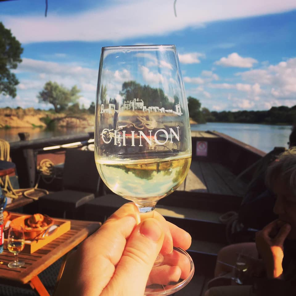 Visite coup de cœur : balade en toue cabanée sur la Vienne (30€/pers). Nous avions réservé pour 17h une balade fluviale de 2h15 avec dégustation de vin et rillettes maison ! On n’a pas été déçus ! La dégustation n’est pas avare, l’hôte ouvre une bouteille de Chinon rouge, puis de blanc, de rosé et de pétillant mais vous fait également terminer les restes donc c’est 8 verres/pers que nous avons pu déguster (pas des petits verres…) accompagnées de sublimes rillettes cuisinés à Ingrandes de Touraine.