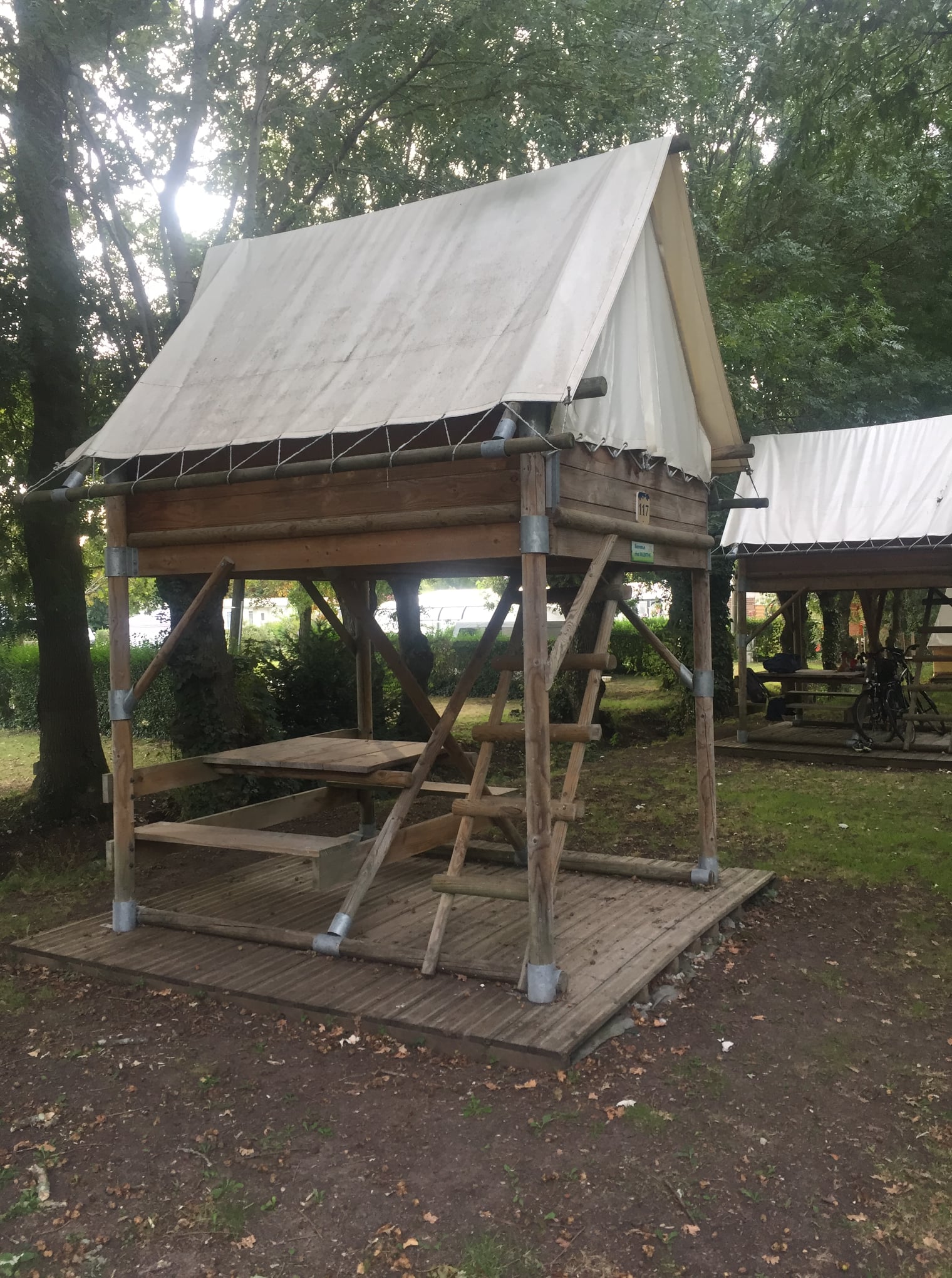 Le camping est très propre, il a un dépôt de pain et selon les jours un petit marché de producteurs. Notre tente est toute équipée avec cuisine et terrasse, nous y voilà pour 2 nuits.
