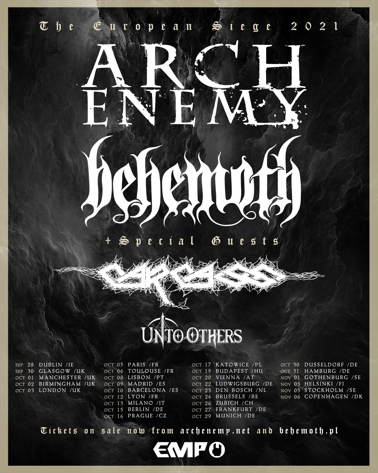 Arch Enemy, Behemoth & Carcass en concert avec 3 dates françaises en octobre :
