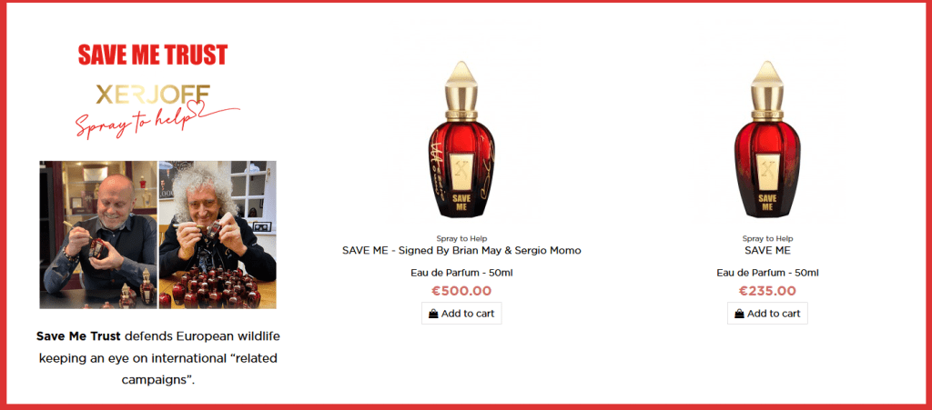 Brian May toujours à fond dans sa fondation de lutte contre l’extermination des blaireaux sort un parfum qui sent la fourrure propre de blaireaux. Appelé Save Me, comptez 239$ le petit flacon en vente sur le site officiel avec flacons dédicacés, bien évidemment !