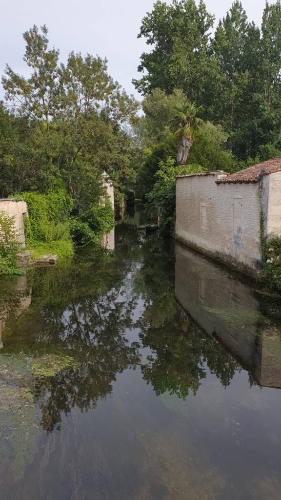 Pourquoi un arrêt à Bassac ? Après l’expérience de la Loire à vélo, on a mis un point d’honneur à ne pas descendre sous les 35 km par étape qui sont largement faisables même pour novices. Ensuite, à Bassac il y a le village des gabarriers avec une balade d’environ 1h30 sur la Charente en gabarre pour 8€/pers. Et enfin, à Bassac, il y a un moulin qui accueille ! Merci à nos hôtes donc, du Moulin de Bassac qui nous ont offert le couvert pour 30€/pers (cuisiné par Cathy), une visite du moulin d’1h avec un verre offert et le logement (43€/pers). Autour du moulin, une jolie balade jusqu’à une abbaye, le calme, la verdure, la nature !