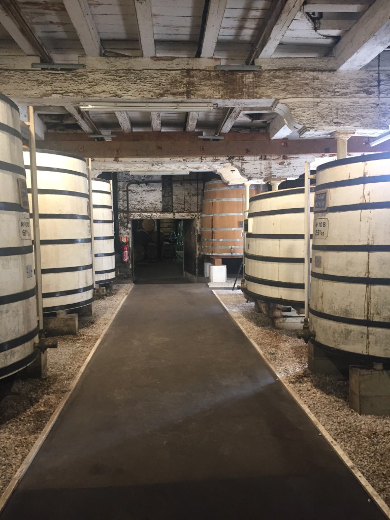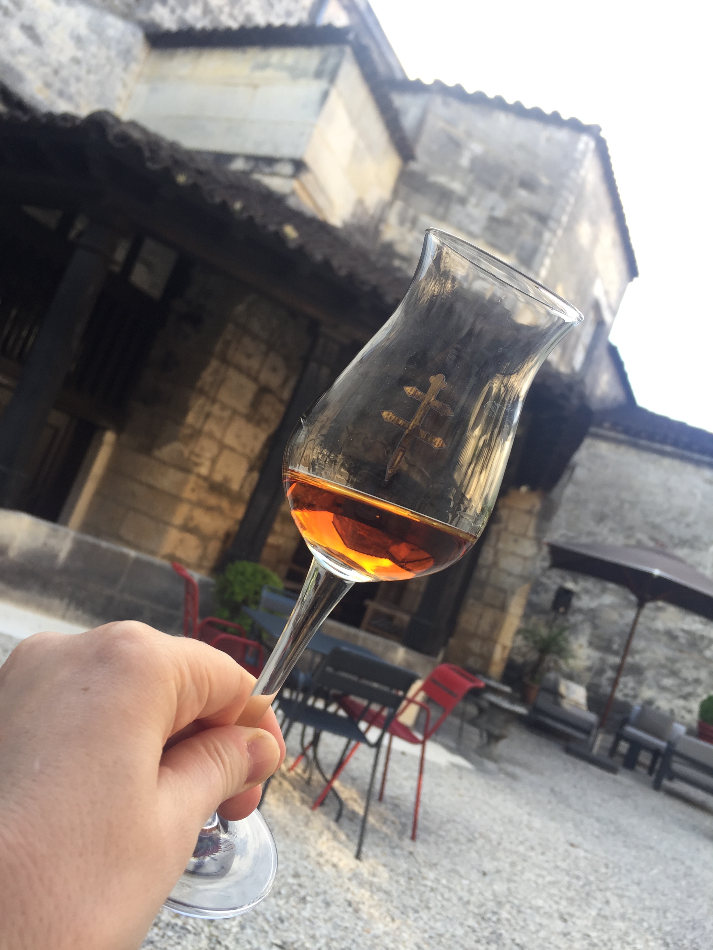 Direction la ville de Cognac, réputée entre autre pour son…cognac. Un peu moins de côtes mais tout de même. La route est cependant sécurisée, toujours au milieu du maïs et sur un terrain en falun. Ne pas oublier le stock de chambres à air bien que personne n’aie crevé. Cognac est une jolie ville avec le chateau de Hennessy, Martell…Nous avons choisi comme visite le chais de la maison du Baron Otard (20€/pers). Oui, cette maison fait partie du groupe Martini et compagnie mais on peut visiter le château en plus du chais, qui a vu la naissance du Roi François 1er et autres rois de passage dans la région. La visite comprend ainsi la visite du chais, du château et la dégustation de 2 cognac (VSOP). Hélas, la visite n’est pas vraiment à la hauteur, trop rapide pourtant nous étions un petit groupe attendu pour 17h. Le château dispose cependant d’un bar où il serait bête de ne pas déguster un cognac maison (voire le Dussé, commercialisé par Jay Z) ou un cocktail.