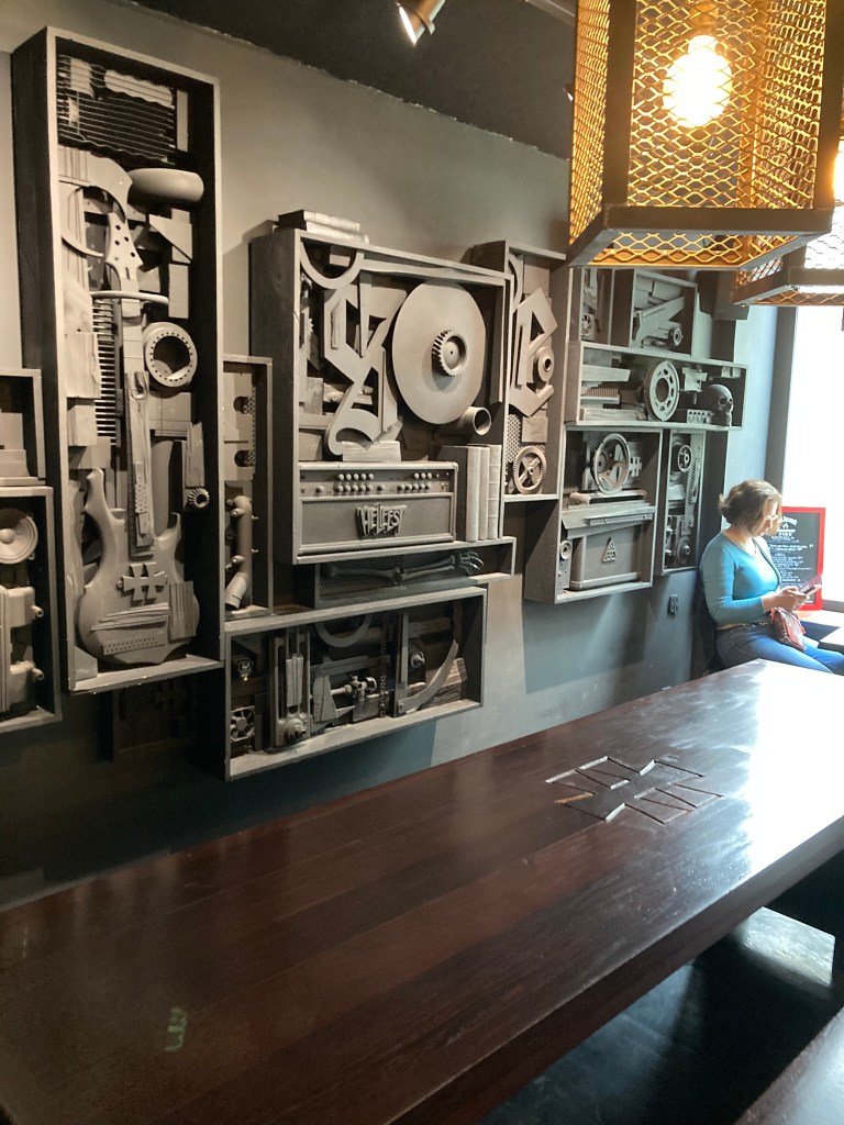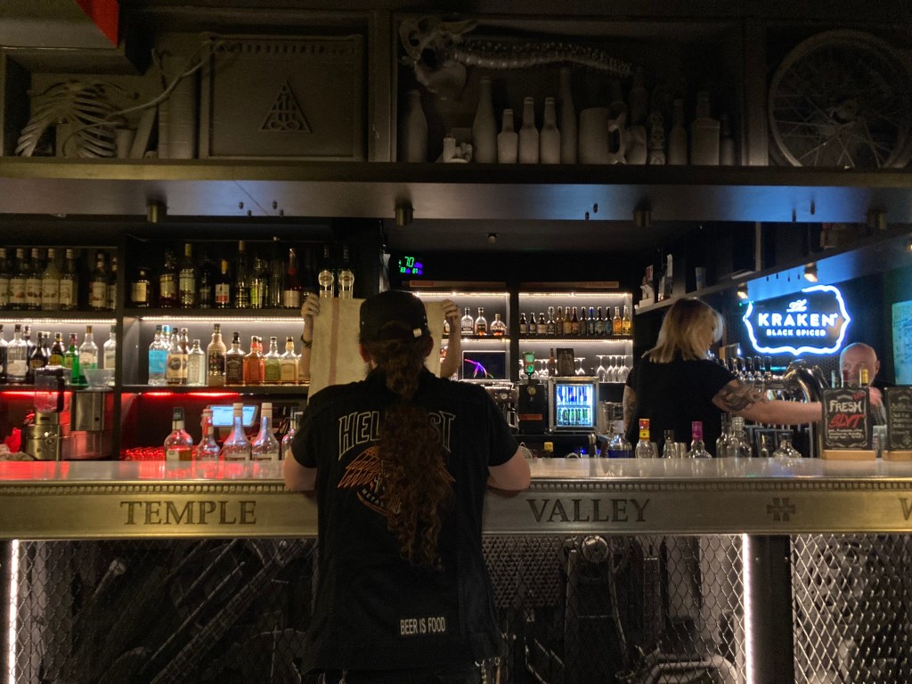 Niché dans la ruelle de Quincampoix, le bar n’a pas lésiné sur sa déco et on n’en doutait pas. Réparti sur 2 étages, le premier est dédié aux boissons et le second (le sous-sol) au merchandising bien fourni : vinyles, livres, fringues Hellfest ou Crève, bijoux le Flibustier…