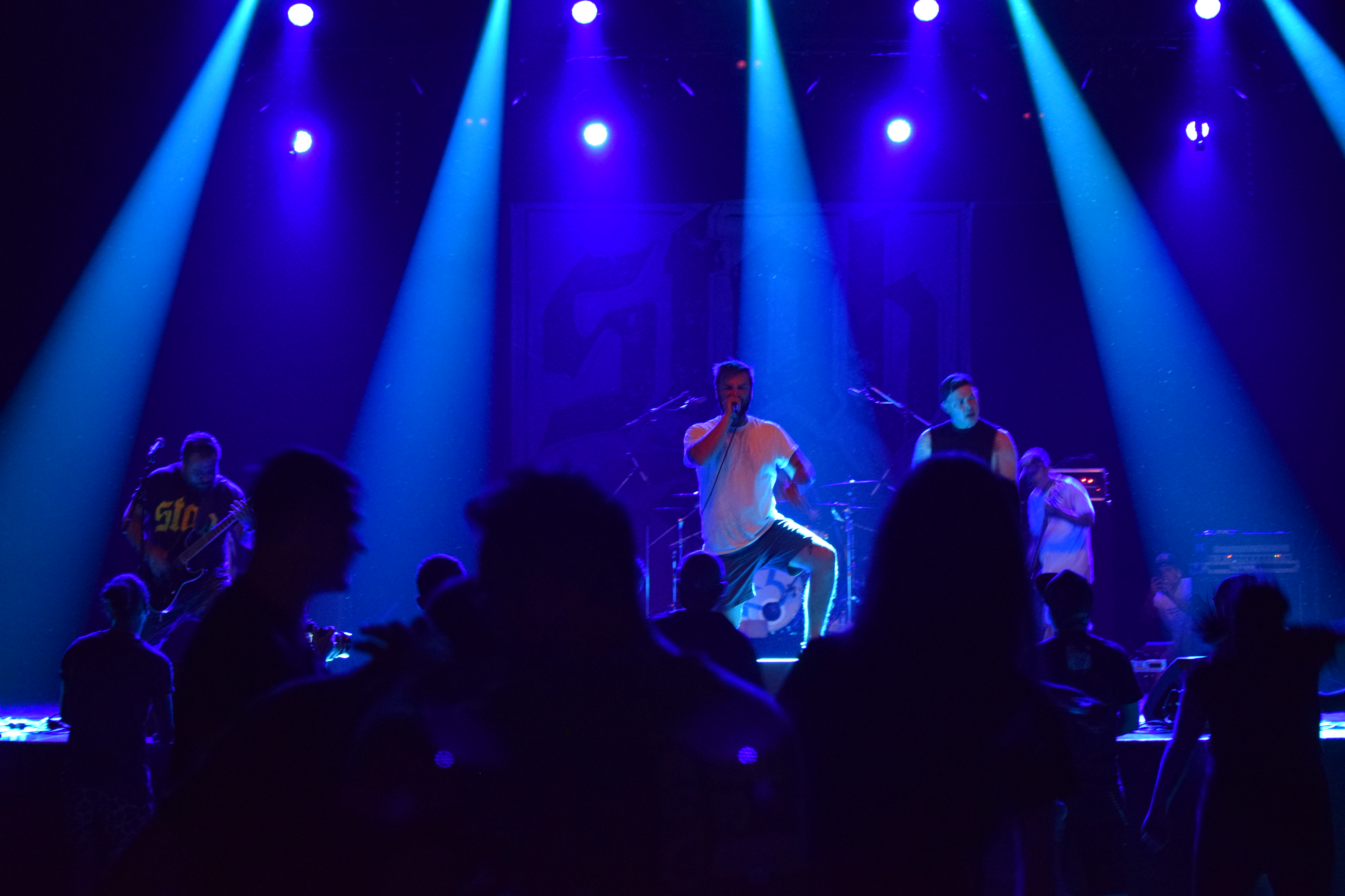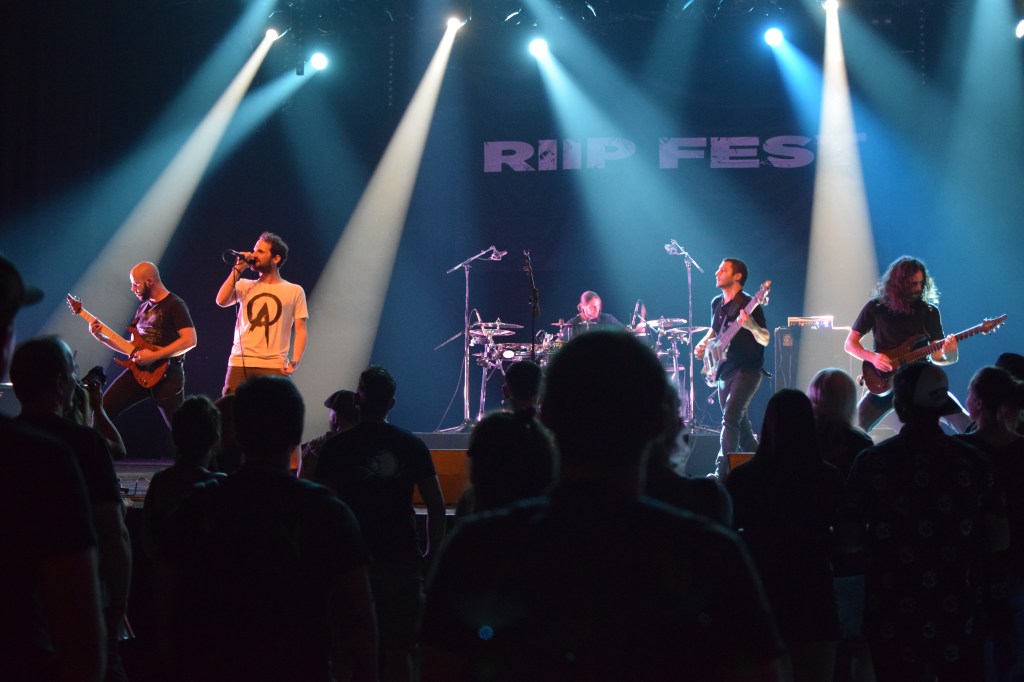 La tête d’affiche pour clôturer cette soirée qui n’avait pas pris une minute de retard. Hélas, les chirurgiens suisses auront eu raison de leur paires horlogers et arriveront avec un bon quart d’heure de retard dû à des problèmes de balance. C’est qu’ils sont minutieux mais on ne va surtout pas leur en vouloir. Le groupe qui offre une exclu estivale au Riip Fest sortira le 28 octobre un nouvel album (le dernier date de 2004 si on enlève les 2 titres en 2018 et l’EP de 2019). Autant dire qu’ils étaient attendus. Le public est à fond, ça slam dans tous les sens, Javier fait tourner le micro dans les airs tenu par un solide câble (du moins on l’espère) et déroule un set qui sera marqué par quelques soucis au niveau de la voix, pas toujours entendible. Le groupe jouera 1h10 en intégrant 5 titres du nouvel album et rendra hommage à un ami. Bien que le public fut moins dans l’euphorie (chaleur et fatigue ?), la prestation était de qualité et présage un très bon nouvel album.