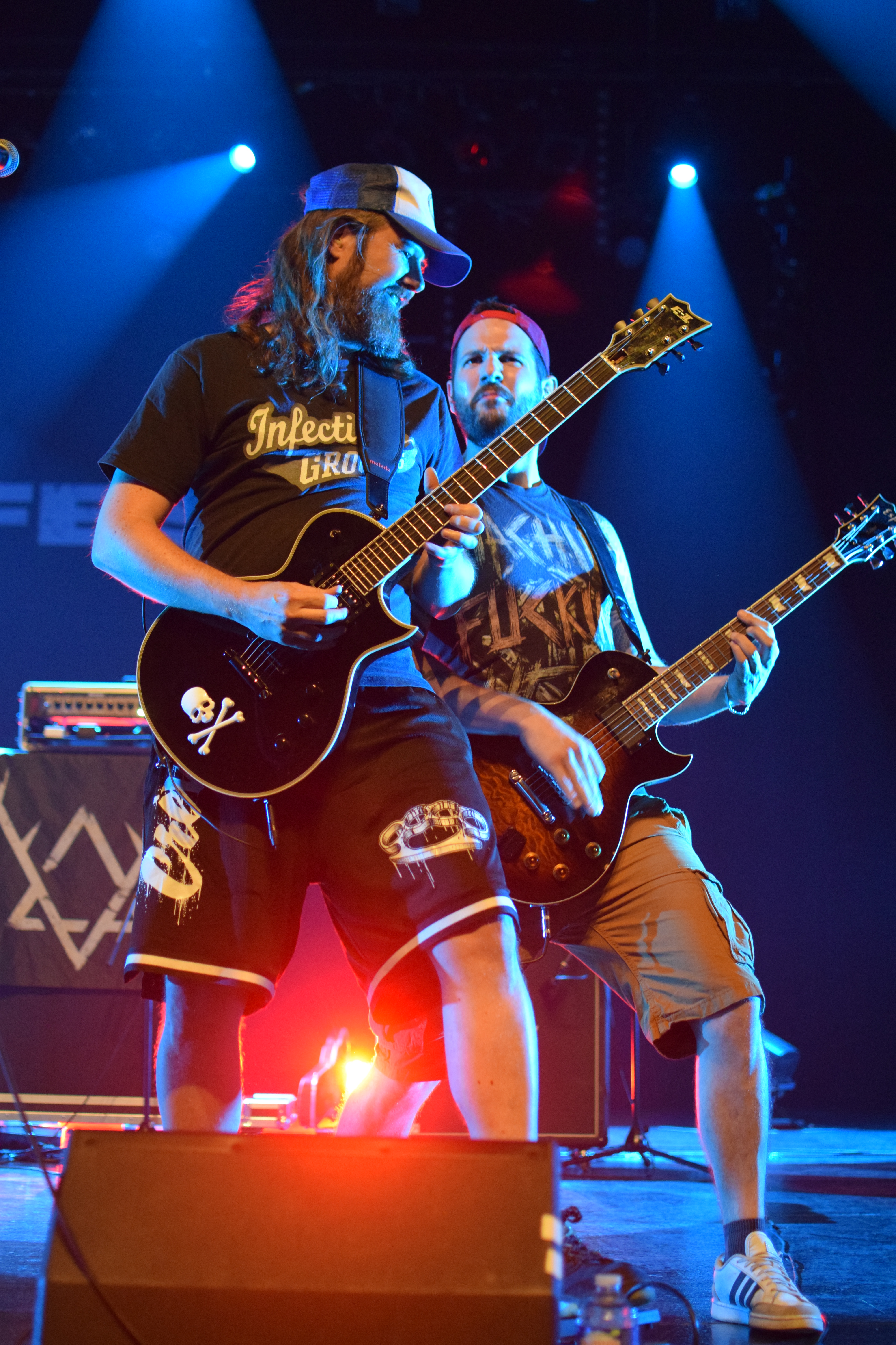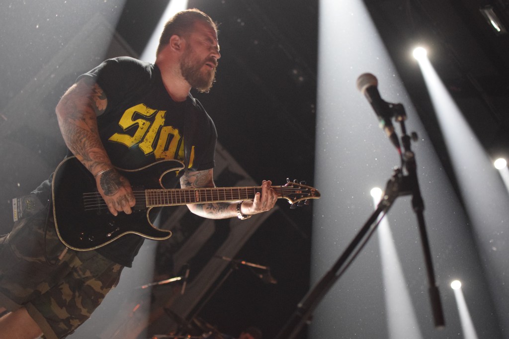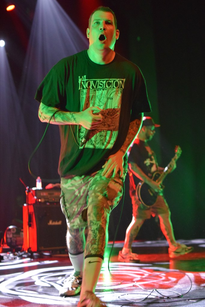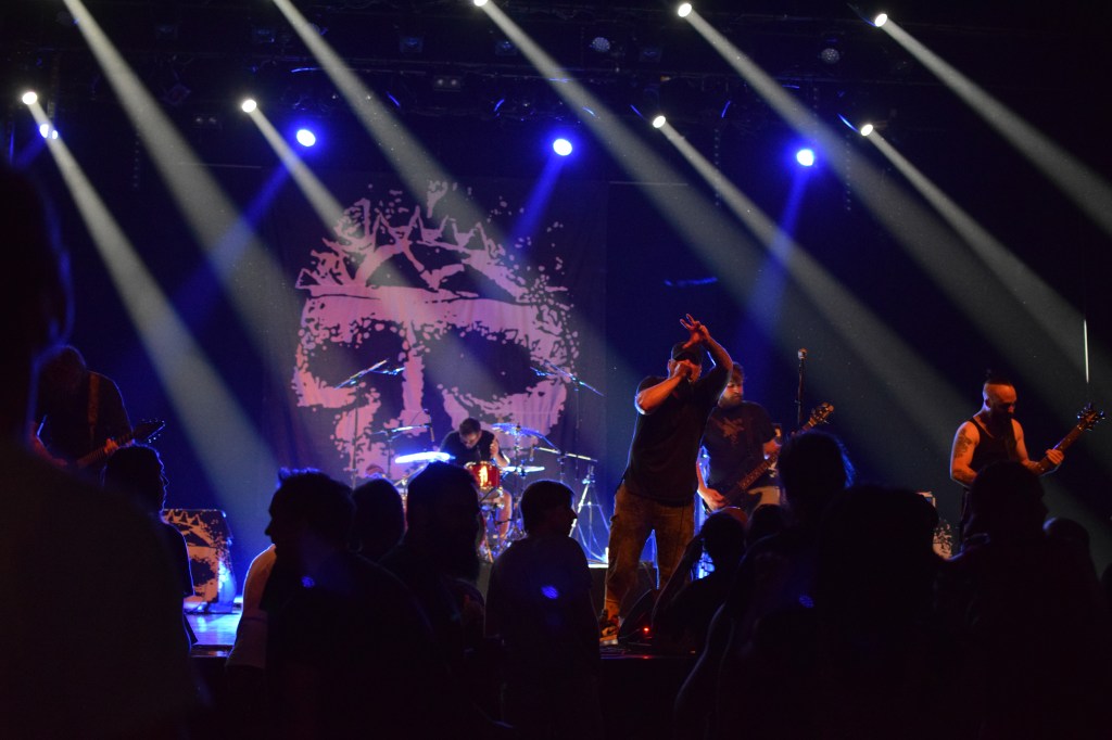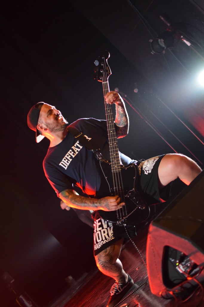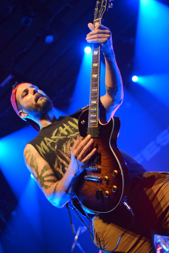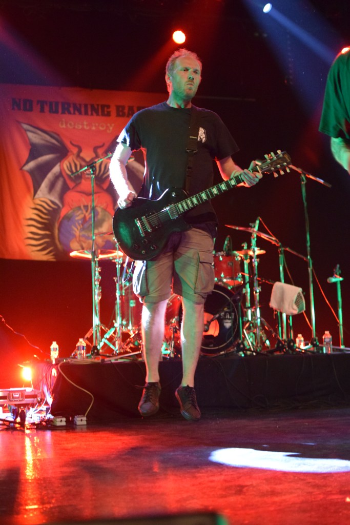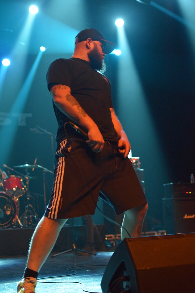 C’est donc au tour d’Integrity, pionnier du genre avec 30 ans d’existence, tout droit importée des USA, pour une prestation de 45 min en exclusivité française. Le groupe possède 2 excellents guitaristes aux soli dantesques, dont l’un d’eux qui le jour du concert, fêtait son anniversaire (annoncé par Dwid Hellion). Hormis les deux guitaristes qui joueront portés à bout de bras par la foule, le reste du groupe est assez peu communicatif et Dwid un peu trop statique en comparaison avec tout ce qu’on a pu voir et réalise un service minimum. Le final se termine sans trop prévenir, sans un au revoir ou “last song”. On a espéré un petit rappel mais non, la salle s’est rallumée. Le guitariste est simplement venu à la fin du set distribuer aux premiers rang des autocollants puis pouf.