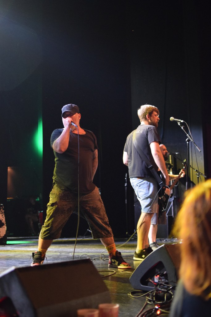 La salle est pleine pour accueillir les chouchous du Riip et pour cause, Emile, le frontman est également le vice-président de l’asso du festival et son programmateur. Le voir porter le bob et lunettes de soleil toute la journée contraste avec la prestation du set totalement habitée et hantée, pour laquelle il a troqué son Tshirt de sport vert pour un Tshirt noir. Plusieurs aficionados sont dans la fosse, prêts à en découdre. Après un petit retard dû à des soucis techniques, notamment le non-retour son, les tourangeaux peuvent entamer leur prestation, dans une ambiance déjà toute acquise et survoltée. La démarche est assurée, énervée, avec par moments un regard de tueur où les yeux sont limite révulsés. Emile s’adressera à plusieurs reprises à l’insistance pour introduire les nouvelles chansons du groupe de l’album Sentence sortie en février 2022 (dispo en LP couleur) : “j’ai écris ces paroles pendant le confinement, pour ceux qu’on a appelé non indispensables comme les bénévoles” – “la différence est une chance, ne pas s’entourer de personnes obscurantistes, et ne pas écouter ces merdes qu’on nous impose” “il y a une semaine j’étais au fond de mon lit, je pensais pas être ici ce soir” ou encore un petit “Manu, va te faire foutre”. On ne compte plus les slams, ni le nombre de pas de KDS dans la fosse. On retiendra également la venue du chanteur de Teething venu soutenir son pote sur le final. Il y a des riffs, de l’énergie, et de l’échange.