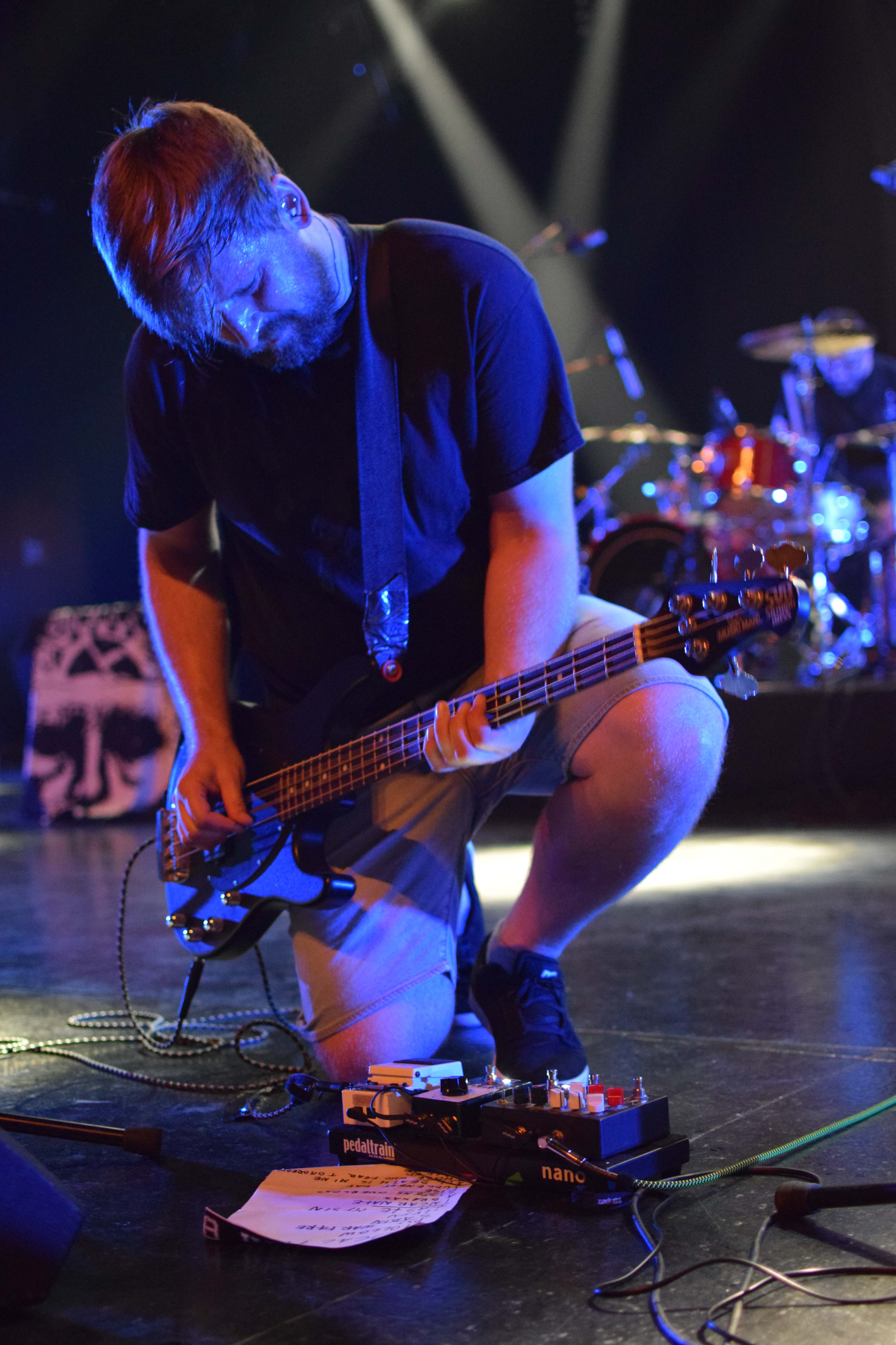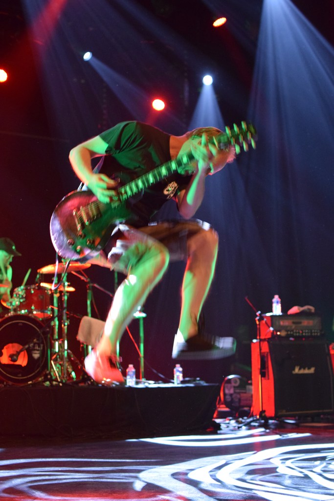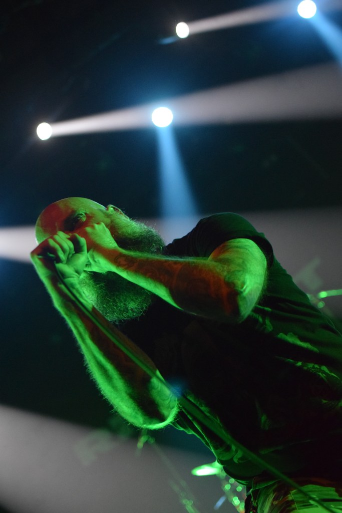 C’est sur une longue intro parlée (extrait de film ?) et à l’ambiance tamisée de lumières rouges que le groupe arrive dans une atmosphère électrisée qu’il va falloir maintenir en forme. Le groupe pourtant bien en forme, n’arrivera hélas pas à maintenir l’énergie de la majorité de la salle