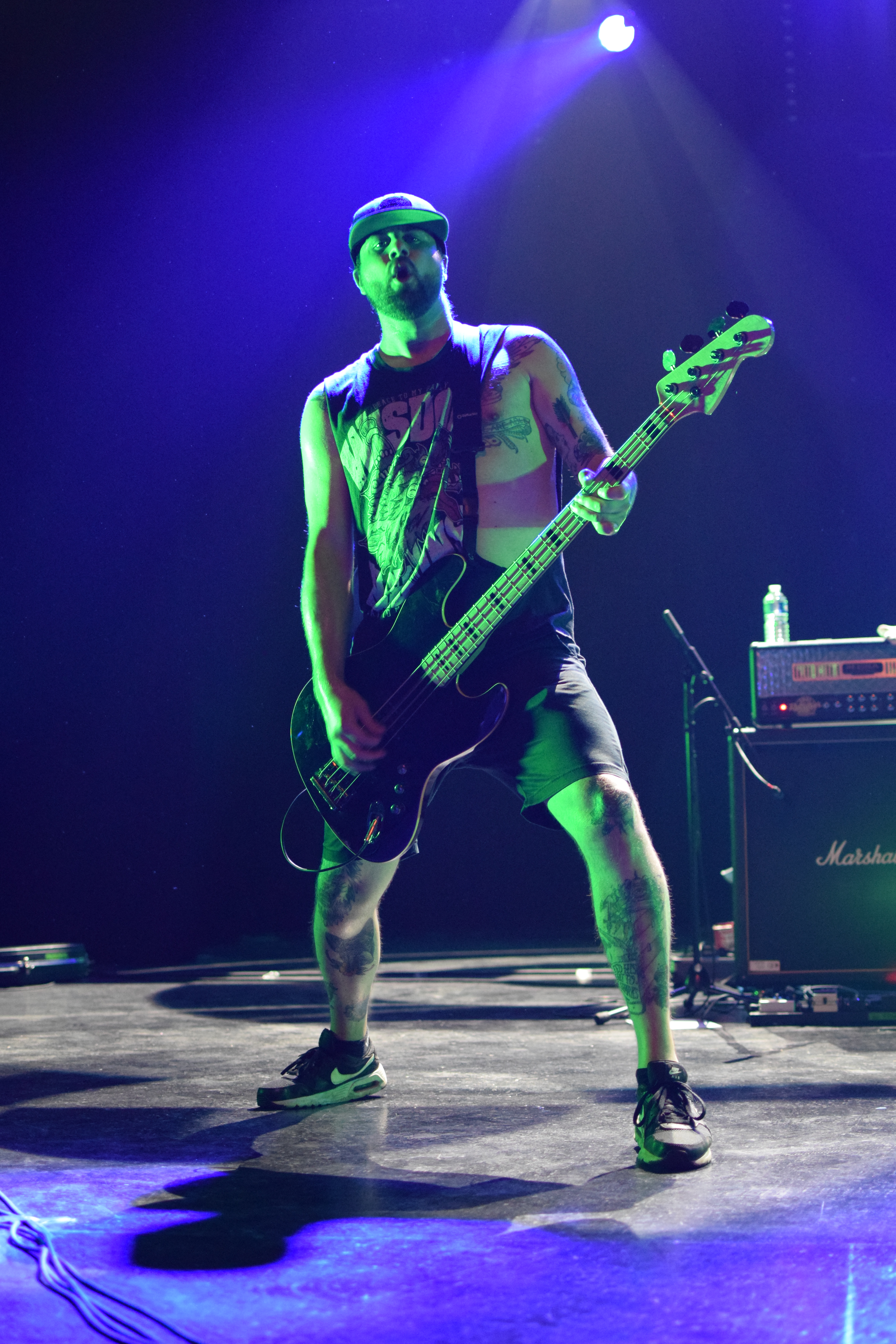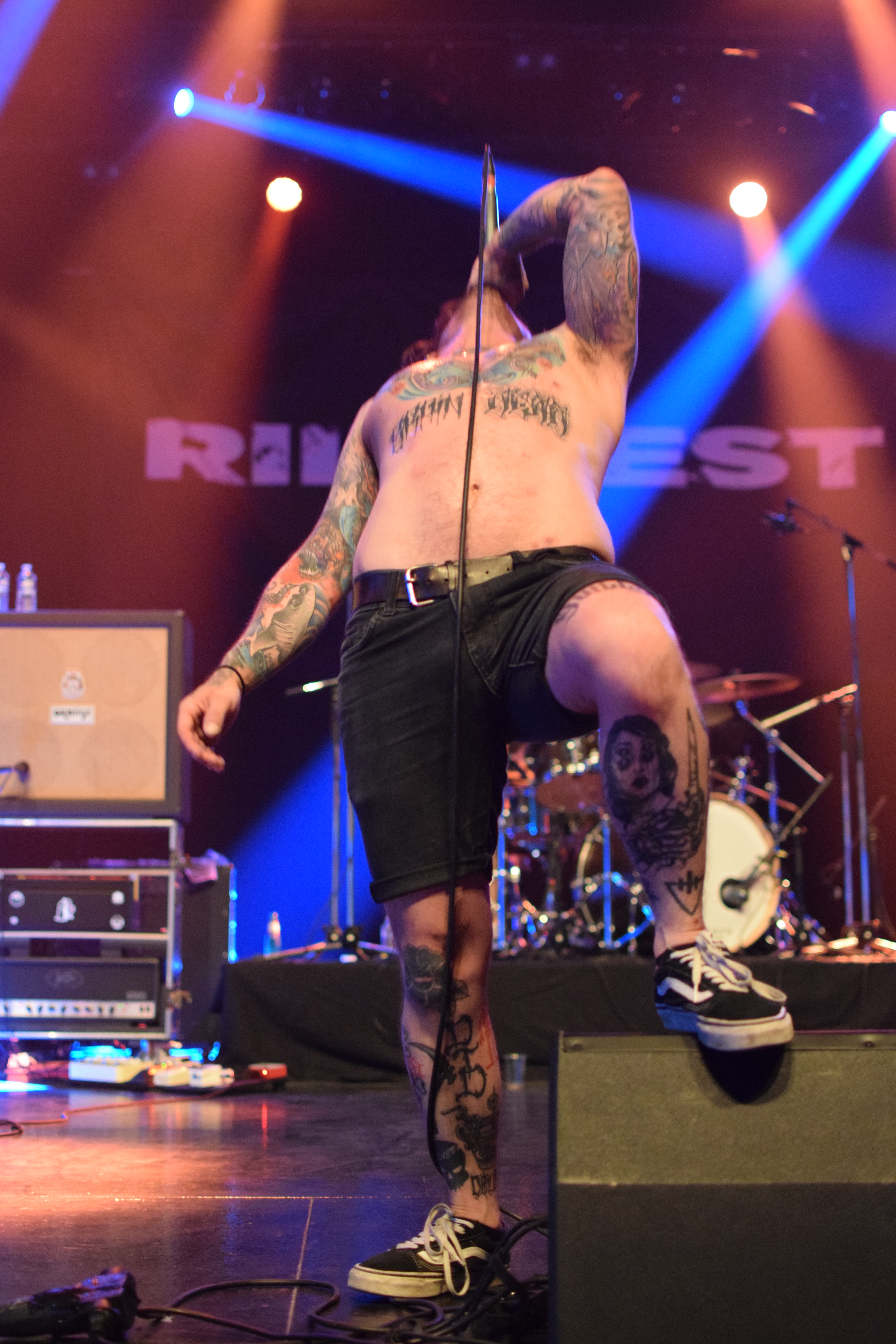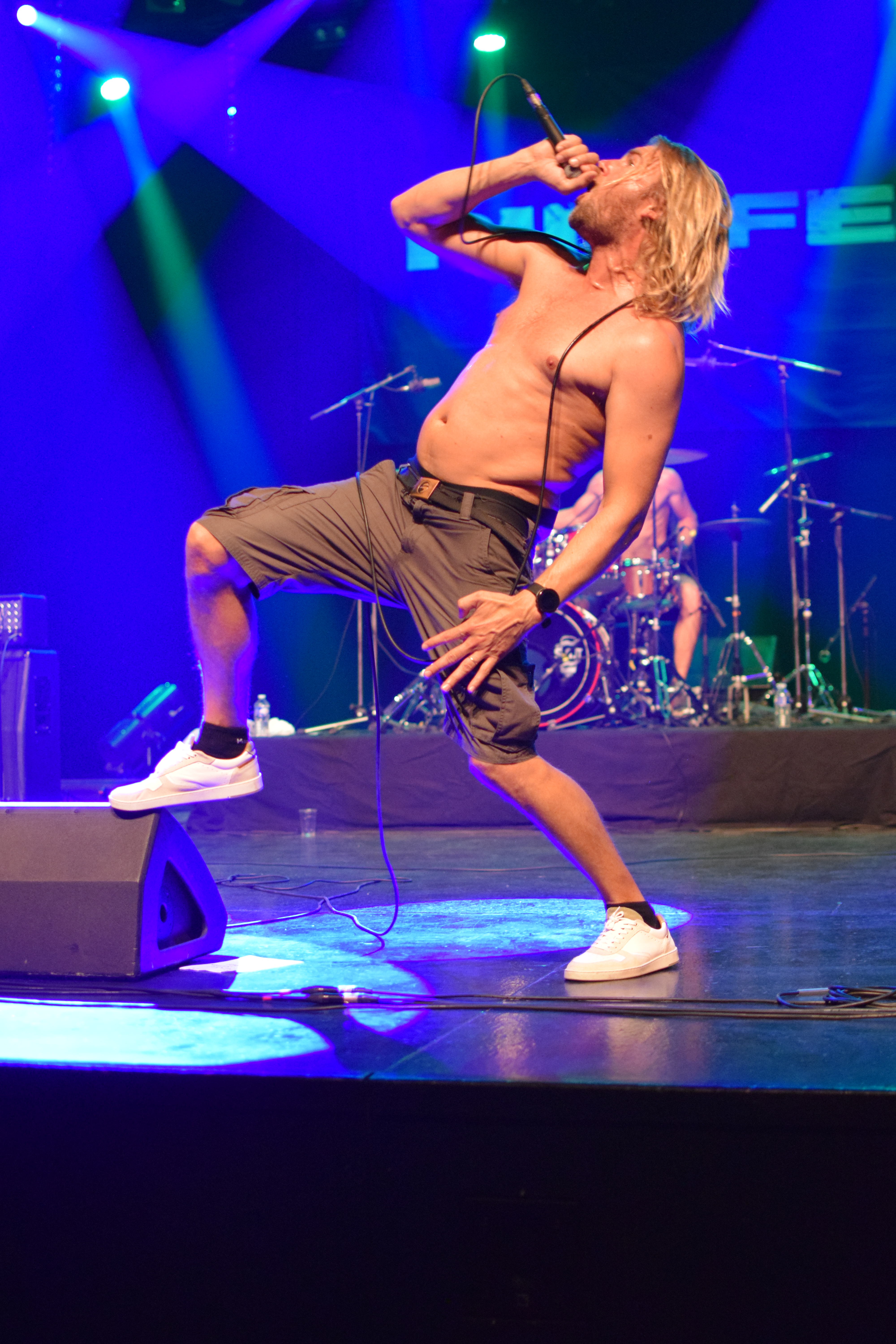 On apprécie les chaussettes bleu cyan du bassiste, et les shorts jaunes look surfeur portés par l’entièreté du groupe, qui laisseront leurs torses nus, histoire d’être bien à l’aise pour occuper la scène. Malgré 2 problèmes techniques pour la batterie interrompant le rythme, l’ambiance n’en a pas été impactée : ça circle-pit, un peu moins que pour Stab, ça moshpit mais le set sera l’occasion de faire le premier Wall of Death de la journée. On peut dire que le groupe ne fait pas dans la dentelle avec des chants gutturaux et une musique de rouleau compresseur emportant tout sur son passage. Le groupe s’adresse beaucoup au public, et ne s’attendait peut être pas à un tel accueil étant le seul groupe représentant ce style. C’était survitaminé mais bien gras et lourd !