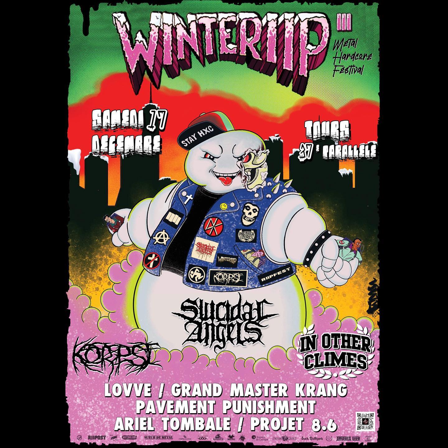 Le Winteriip se déroulera le samedi 17 décembre à Tours avec Suicidal Angels, In Other Climes, Korpse et 5 autres groupes. Tarif prévente 15 € en vente ICI.